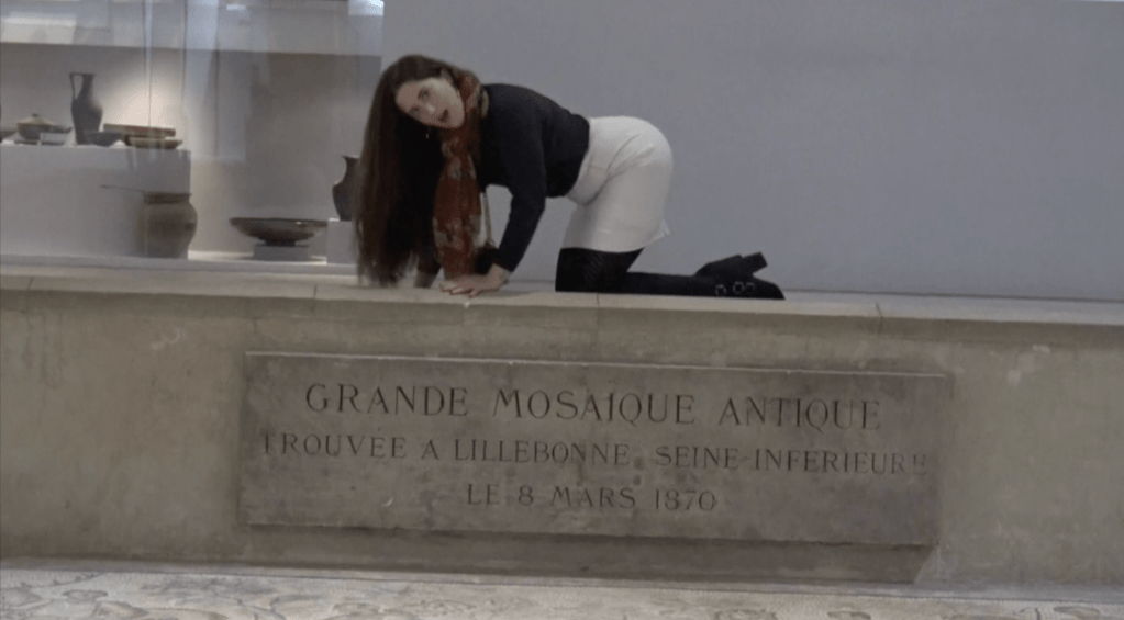 Inside the Museum of Antiquities in Rouen, rich collections centered around ‘hunt culture’ (la Chasse) and family graves from the ‘Roman Gaul’ era can be found. Both Carman and Stephane bring their personal challenges into the museum, engaging in conversations with the exhibited ancient ‘artifacts’. Over time, Carman and Stephane begin to merge with the images reciprocally exchanged in the museum’s gaze. Gradually, their personal troubles find a place within the sedimentary memory of antiquity.